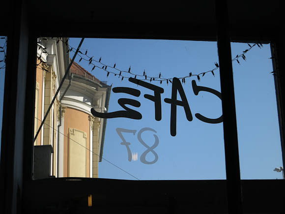 Go to Cafe Sant’ Angelo on Denisova street for their one of their renowned breakfasts. On arriving, discover that the kitchen is closed, so it’s cake or nothing. Bump into a couple of English teachers on the street outside and head instead for the Café attached to the modern art gallery. Proceed to stuff your face.