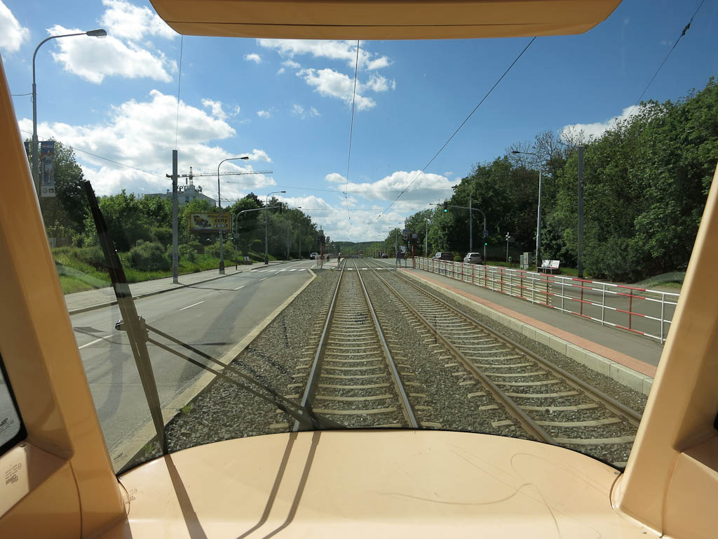 There’s not much here at Spojovací, just a loop of track that enable the trams to circle about and come back the other way. It’s an area of traffic junctions and wide roads, and the openness of the area makes it feel strangely barren and gives it a sense of social isolation.