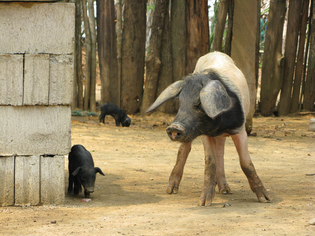 Taking lunch with the pigs and the chickens. That is one seriously nice bit of lunch.