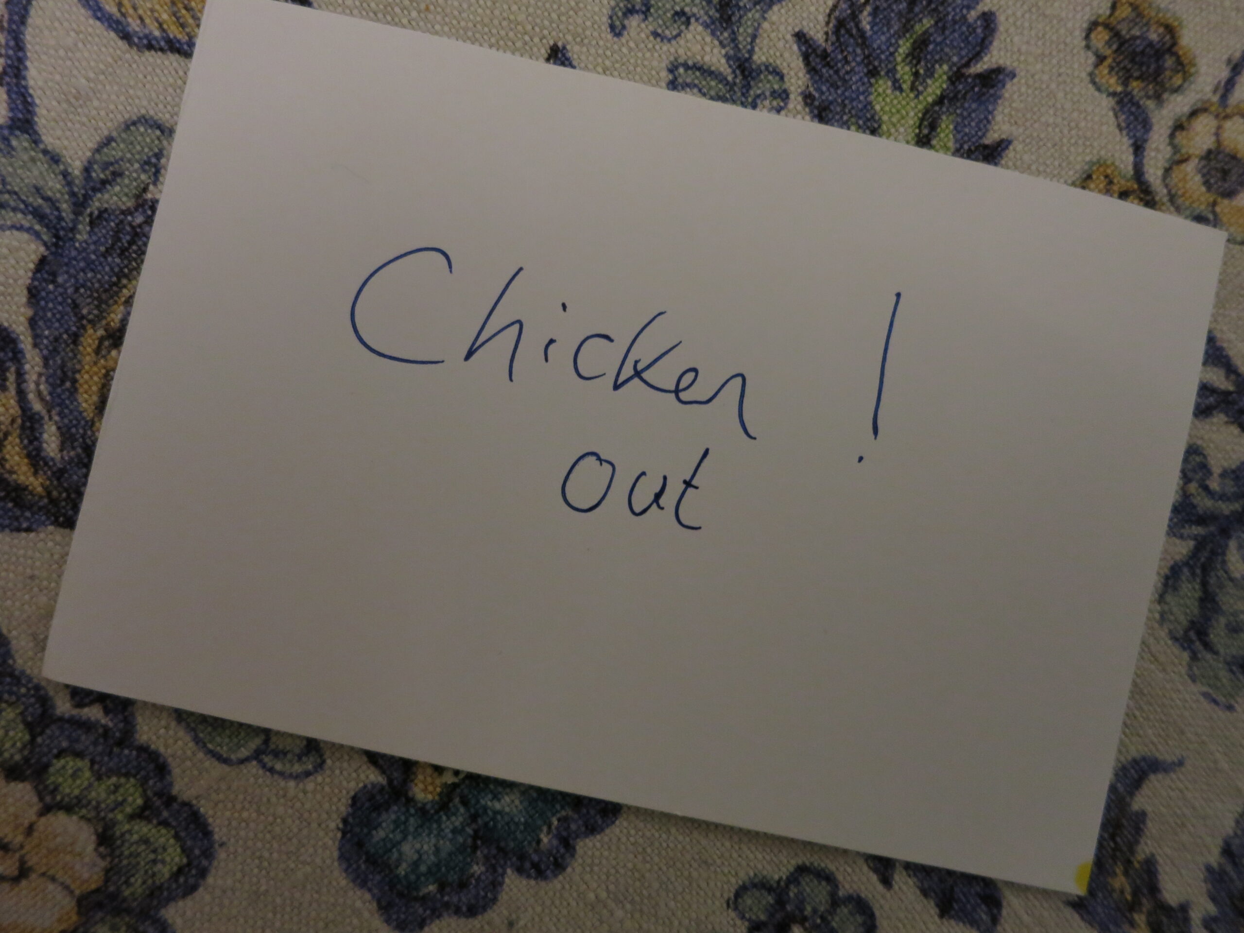 Chicken out? Eh?! I don’t chicken out of anything! Or if I do then at the very least I pretend it’s some kind of tactical withdrawal.