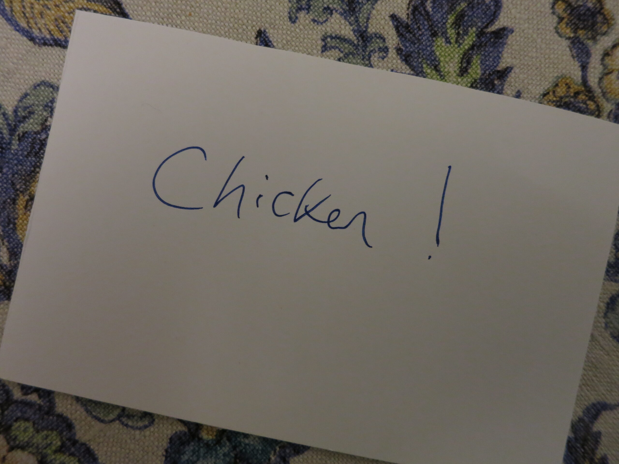 Why was I calling myself a chicken? I can be self-deprecating at times – that’s just the British way – but I’m not one to leave abusive messages for myself.