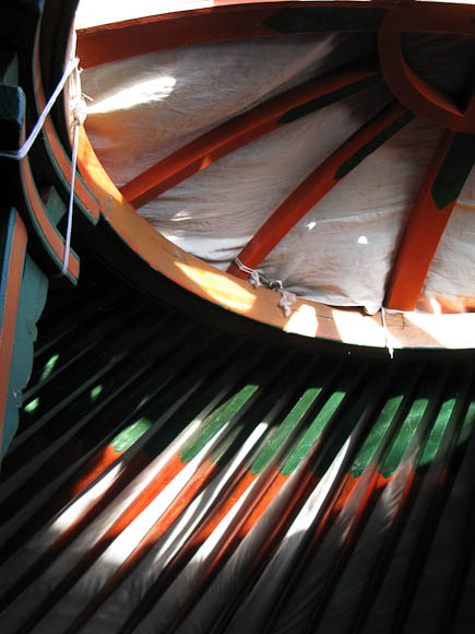 In fact it could go too far – in one ger, travelling companions and I got a bit over-zealous with the wood to the point that we all ended up sitting round in shorts with the door open. Any bird flying over the top of the stovepipe would have been thumped into orbit by the thermals.