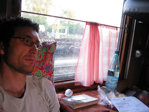 On the overnight train from Chisinau (Moldova) to Bucharest (Romania). The book is Stamboul Train by Graham Greene, which is completely inappropriate to this journey and should have been confiscated at the border.