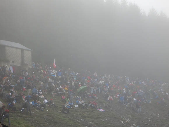 The gates opened and the headlong rush began, with everyone, having passed through the bottleneck ticket check, moving at somewhere between a fast march and a headlong sprint, and many carrying cooler boxes and camping chairs to boot, all legging it for the best spots from which to see the race.