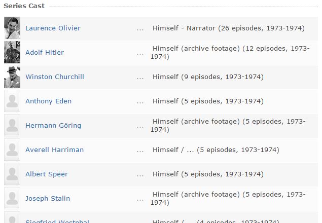 It’s not a recent programme. It was made in 1973 by the British company Thames Television, in conjunction with the Imperial War Museum, and is narrated by Laurence Olivier.
